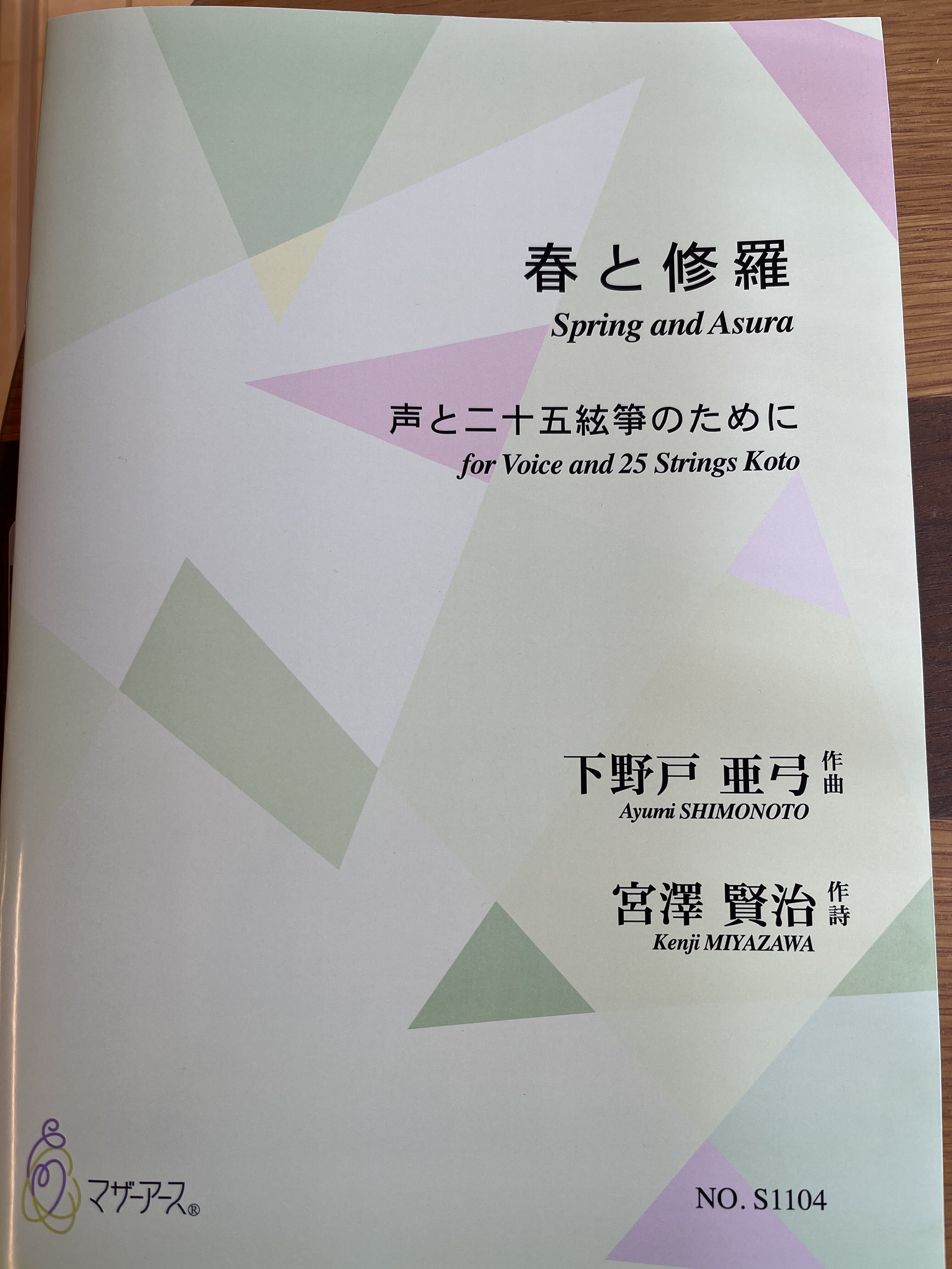 声と二十五絃箏のために書いた「春と修羅」、このたびマザーアースより楽譜出版いたしました。